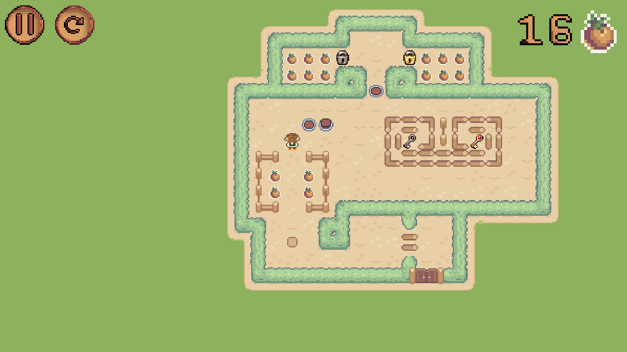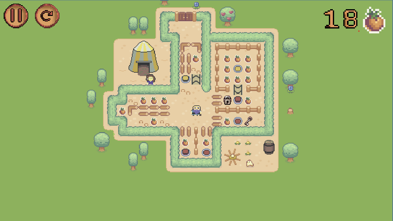 The gameplay is inspired by an old phone classic - Bobby Carrot. I wanted to try out a proven puzzle design, but reimagine it with my own art, ideas, and twists. You’ll be guiding 1 one of the farm through different village-inspired levels, collecting crops, solving puzzles, and finding the way forward.